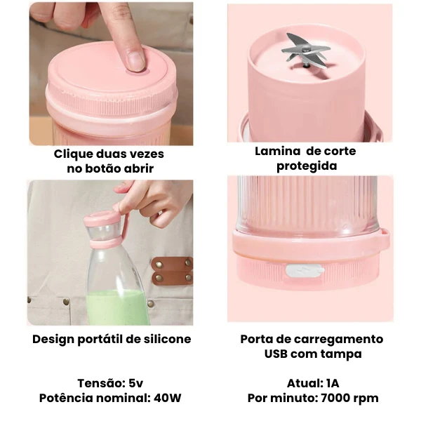 Transforme sua rotina com o Liquidificador Recarregável USB e desfrute de sucos frescos e saudáveis em minutos. Adquira o seu agora e sinta a diferença!