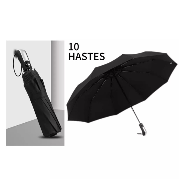 Sua armação é uma das mais reforçadas do mercado. Ele possui o varão principal e suas 10 HASTES feitas totalmente em METAL com reforço em FIBRA DE VIDRO nas varetas médias e ponteiras em aço, tornando o guarda-chuva mais RESISTENTE. Além disso, ele é confeccionado em tecido Poliéster e apresenta secagem rápida, o que evita manchas e pontos de mofo no tecido.